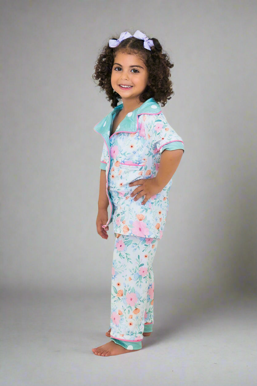 This sweet floral pajama set features a short-sleeve top and full-length pants made from our ultra-soft Peach Skin fabric. Part of our Mommy and Me Collection, it’s designed for twinning in total comfort—perfect for story time, snuggles, and sleepy smiles.