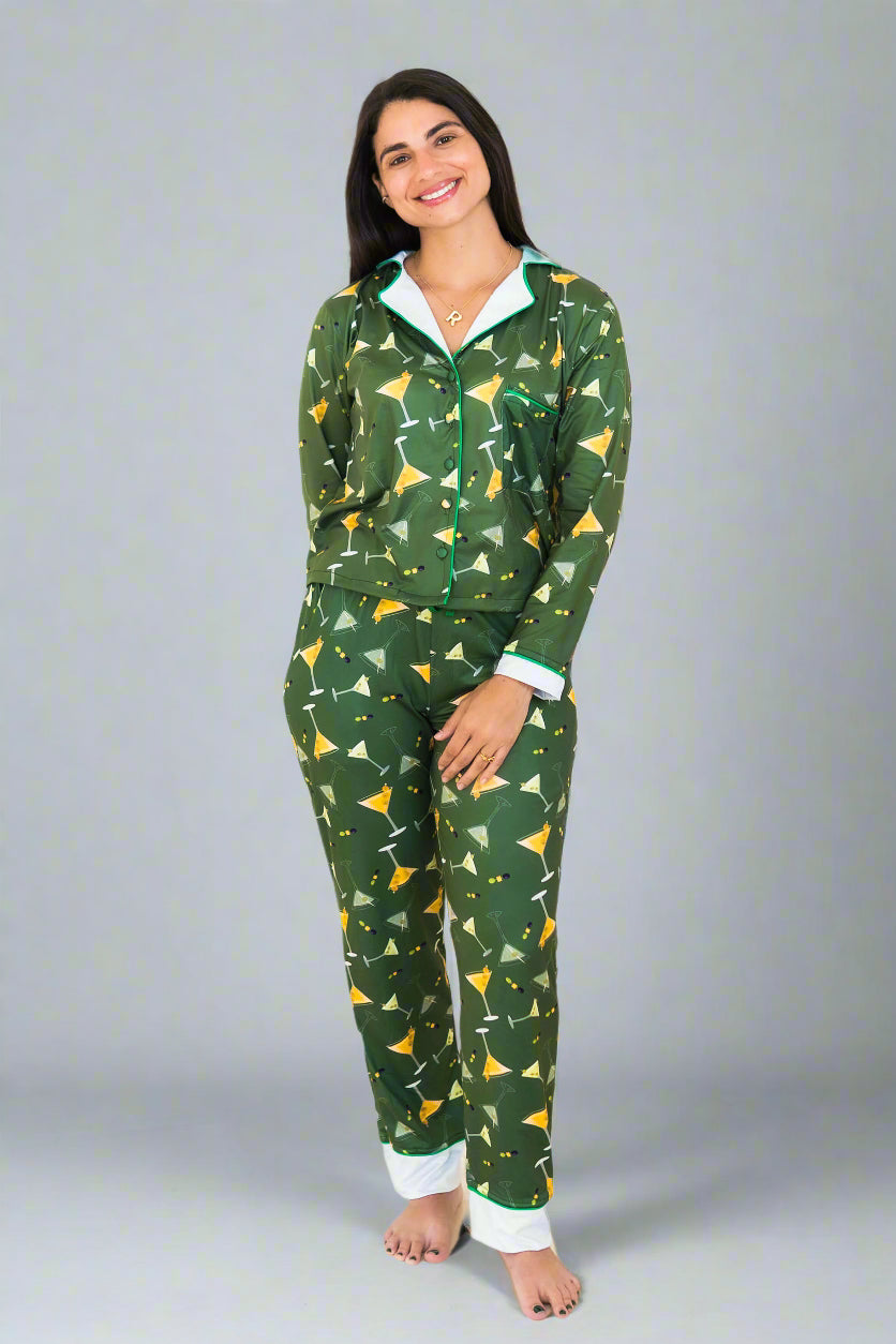 Our Martini Nights set brings cocktail-hour charm to your loungewear. Featuring a playful martini glass print on silky-soft Peach Skin fabric, this long sleeve + full-length pant combo delivers comfort with a splash of style. Cheers to cozy nights in!
