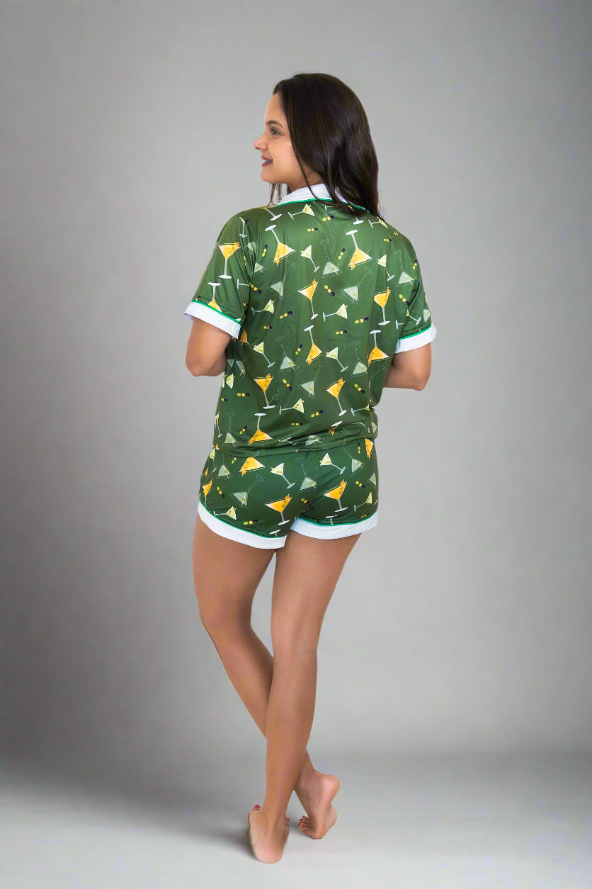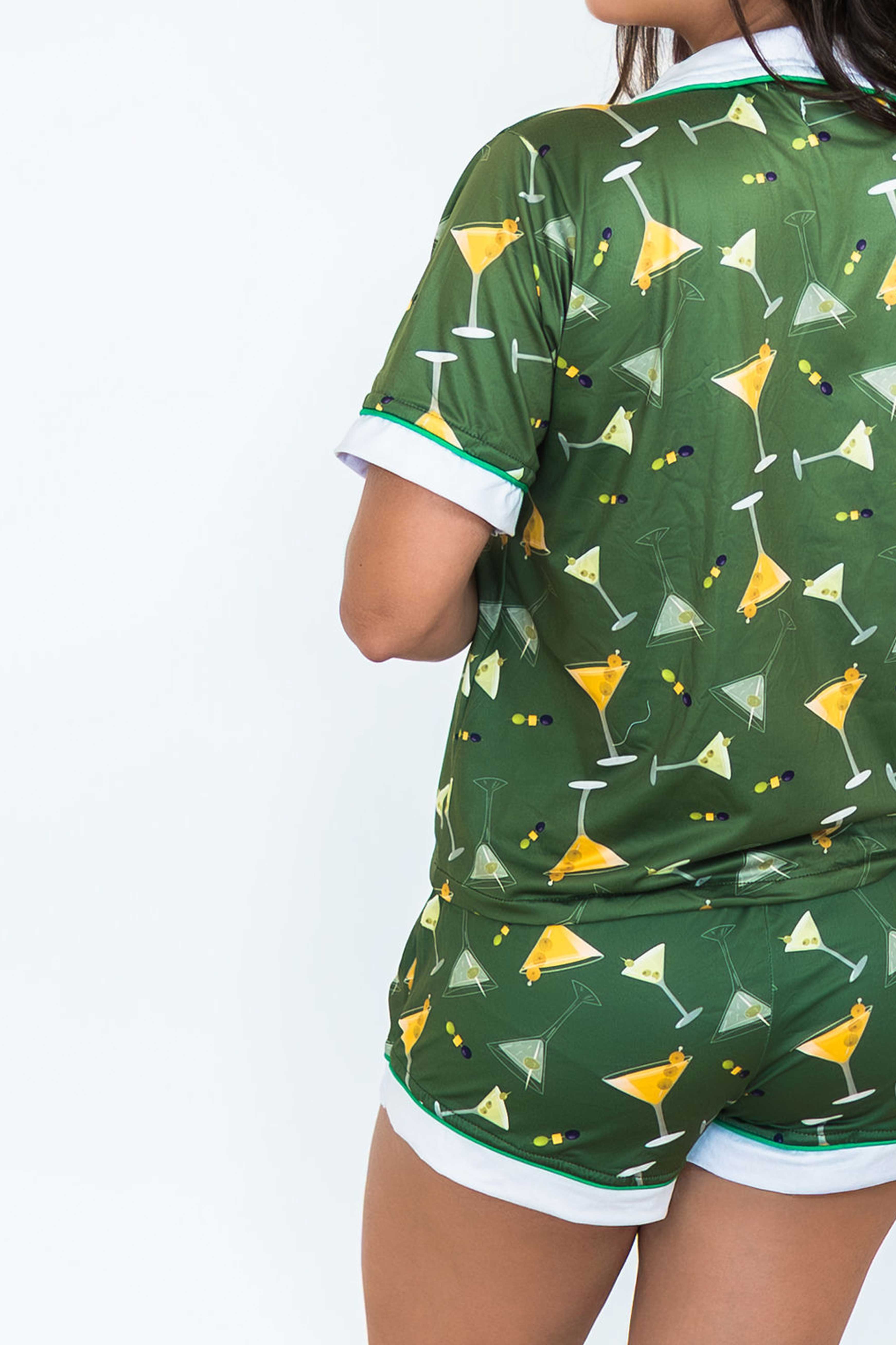 This set from our Martini Nights collection brings a fun twist to bedtime with its bold martini glass print. The short-sleeve top and matching shorts are made with silky-soft Peach Skin fabric—perfect for lounging in luxe or mixing up cozy vibes with a splash of fun.