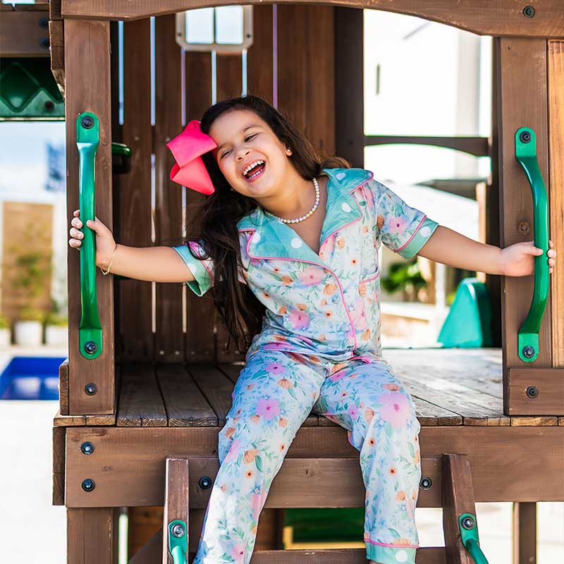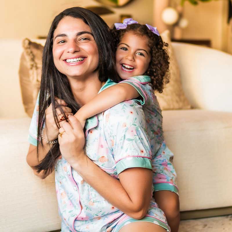Este encantador conjunto de pijama floral incluye una camiseta de manga corta y pantalones largos, confeccionados con nuestra tela ultrasuave Peach Skin. Forma parte de nuestra Colección Mamá y Yo y está diseñado para que los gemelos disfruten de la comodidad total, perfecto para leer cuentos, acurrucarse y disfrutar de las sonrisas de los pequeños.